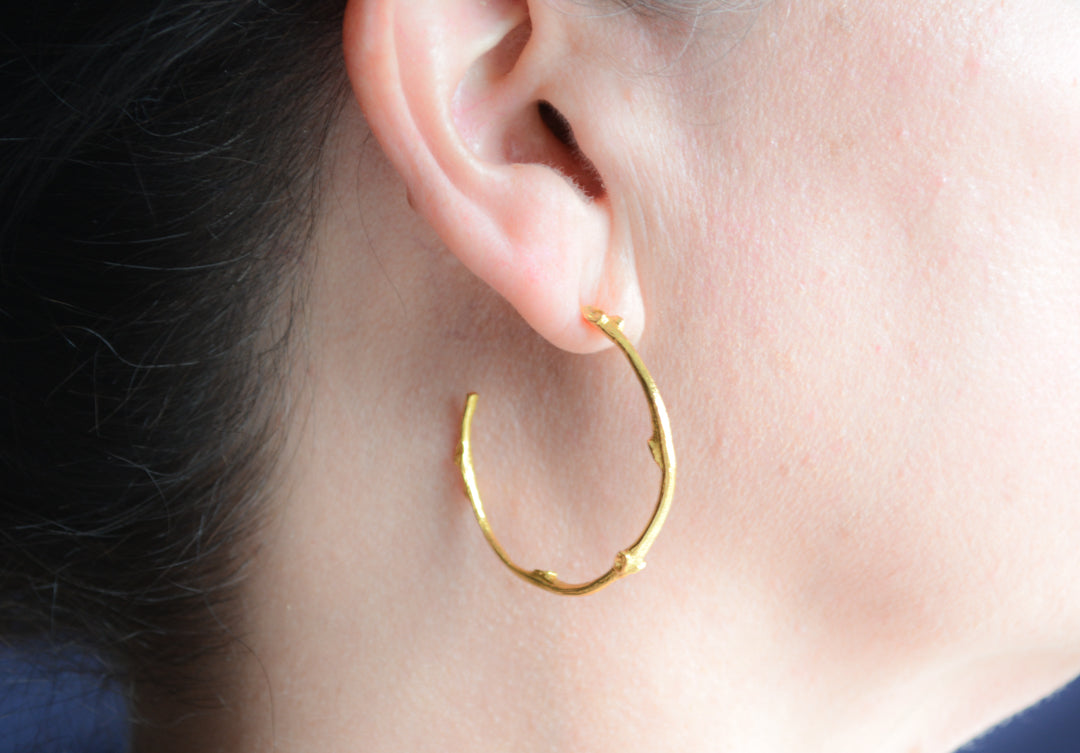 Bamboo never looked so chic! Our Bamboo Hoops feature a textured design and are electroplated with 22k gold for a touch of luxury. The light weight makes them perfect for everyday wear, while the versatile design can easily be dressed up or down.