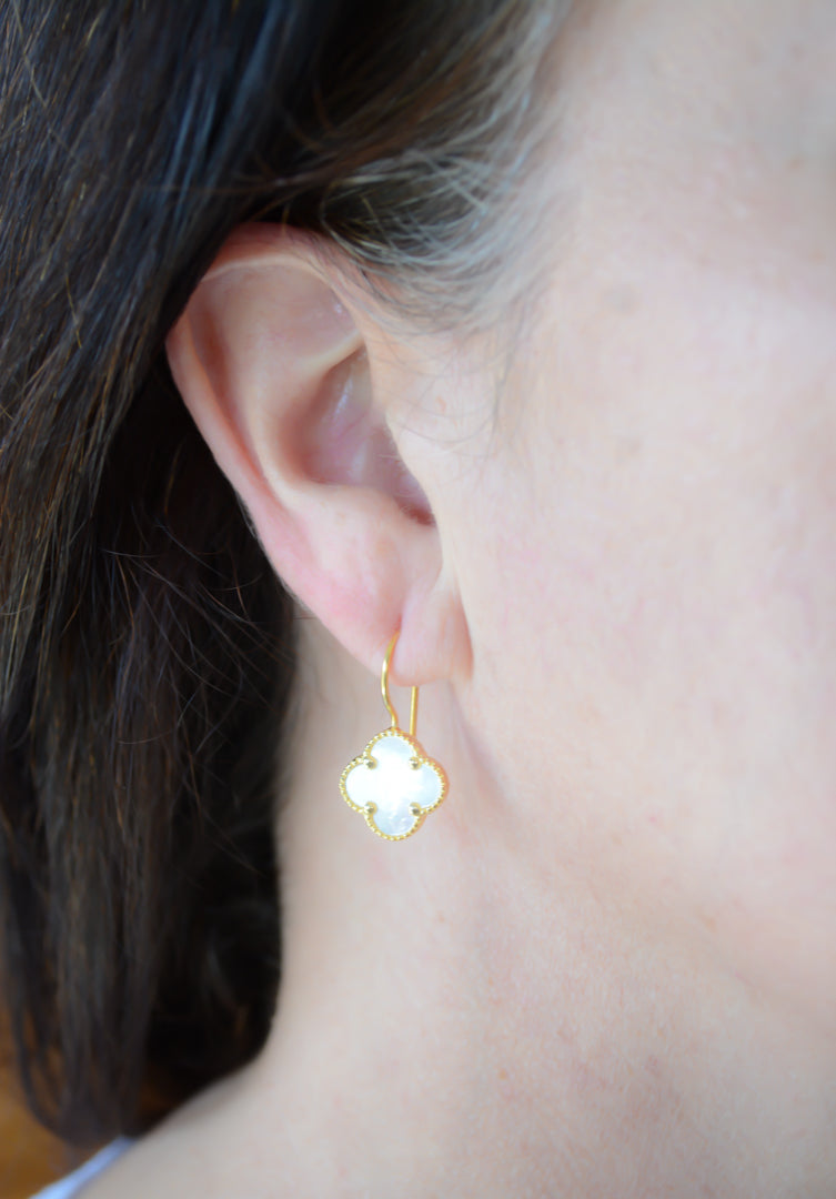 Gold Mother Of Pearl clover drop earrings