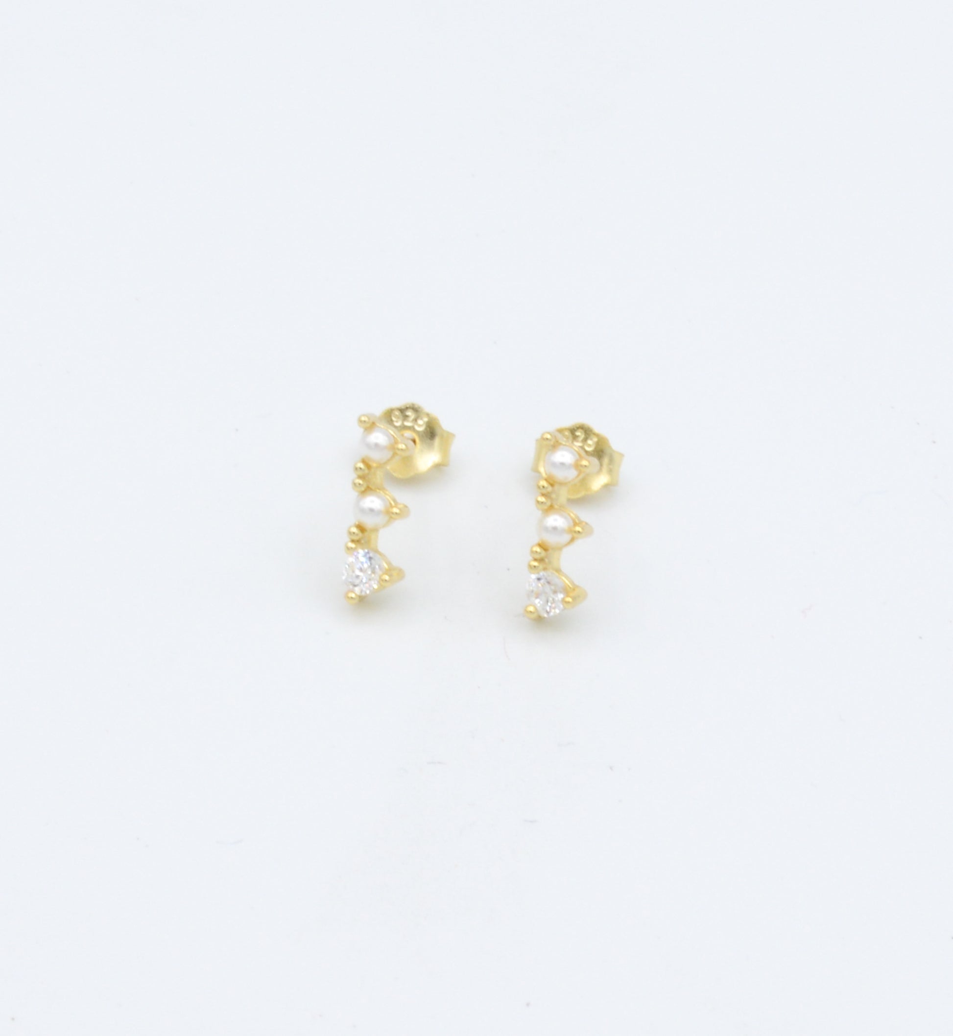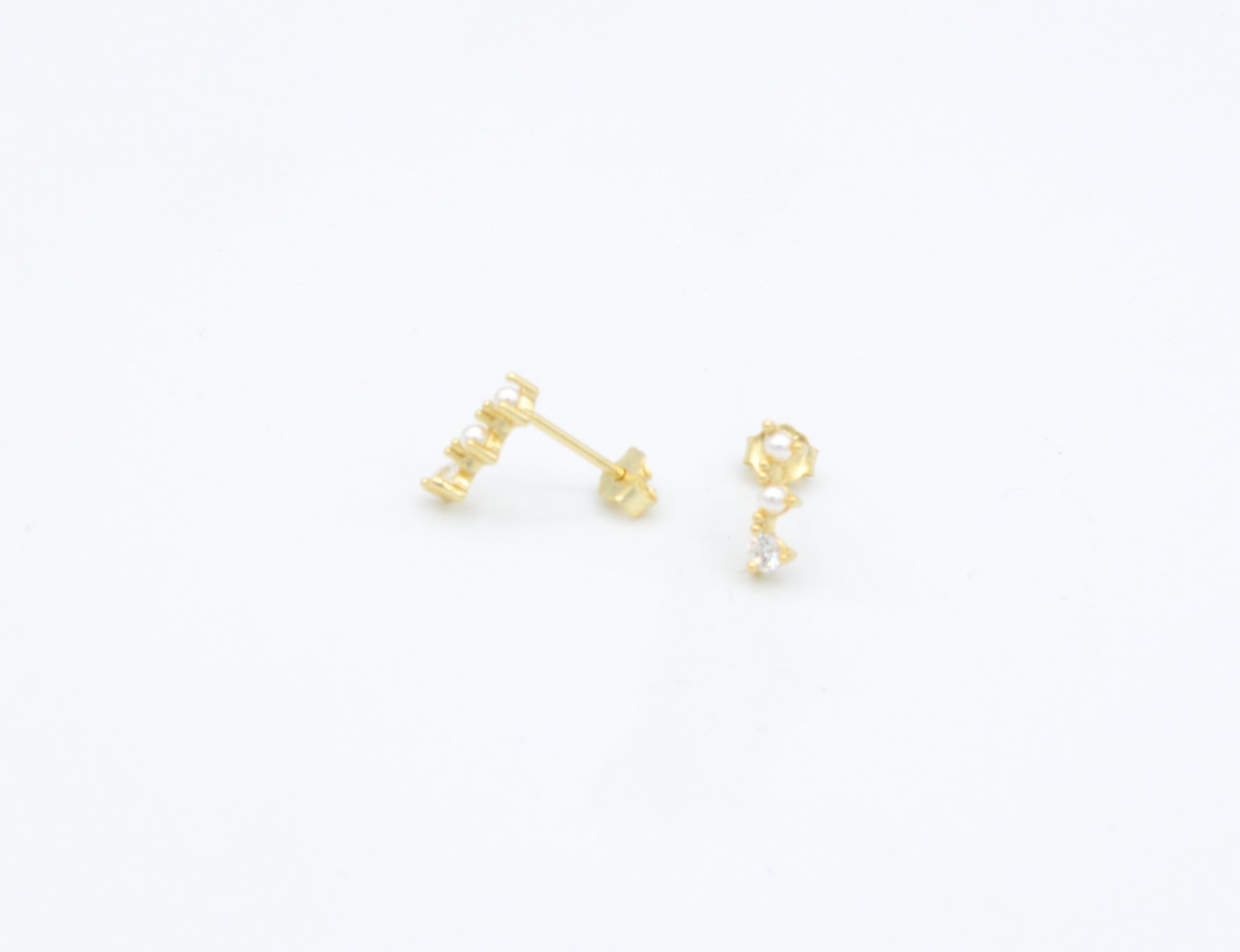 A delicate touch of elegance for any ear stack. These petite stud earrings are crafted from sterling silver and finished with a luxurious 14kt gold plating. Each features a luminous freshwater pearl paired with a subtle cubic zirconia accent for just the right amount of sparkle. Measuring under 1/16" in size, they’re perfectly petite—ideal for second piercings or stacking with your favorite earrings.