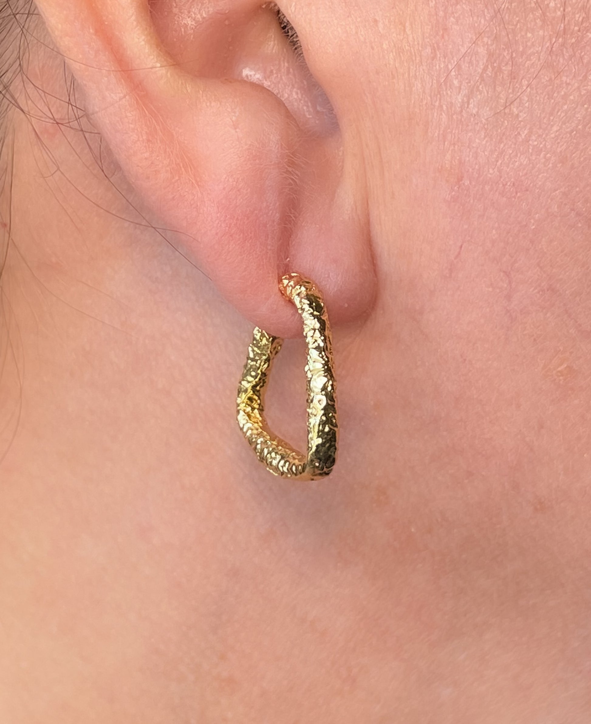 Gold plated organic shape textured hoops with post