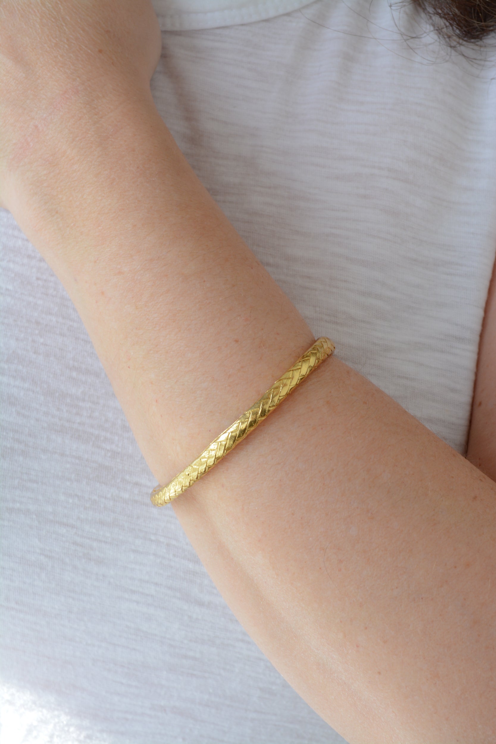 Indulge in the sophistication and elegance of our Handmade Gold Plated Woven Cuff. Crafted with care from brass and finished with a luxurious 22kt gold plating, this timeless piece is perfect for any occasion. One size fits most, making it a versatile and chic addition to any jewelry collection.