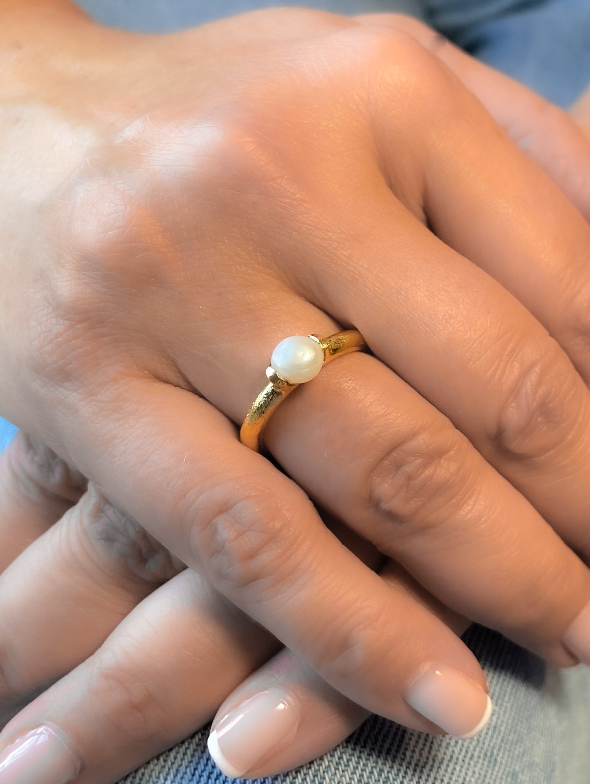 Matte gold ring with pearl