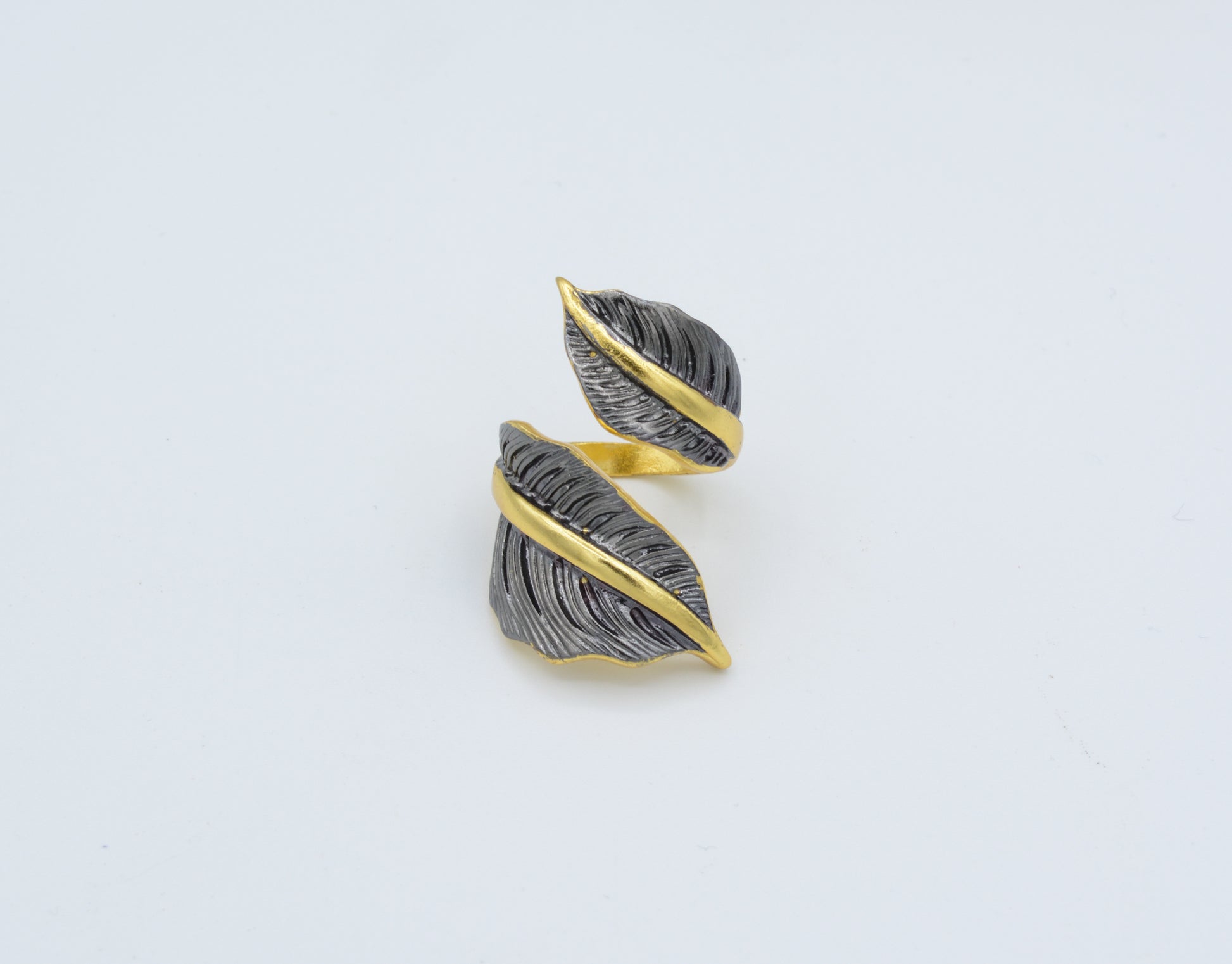 A captivating statement piece, our Two Tone Textured Leaf Ring is a fusion of oxidized and 22kt gold-plated brass for an artfully understated and contemporary look. This masterpiece provides a sense of ageless elegance without compromising its edgy vibes. One size fits most.
