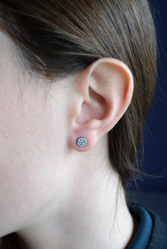 Dark Rhodium plate pave set cubic zirconia disc studs