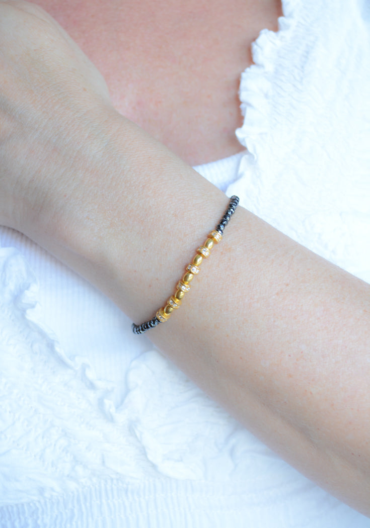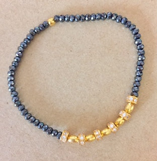 Faceted Hematite and Gold Plated Silver elastic bracelet