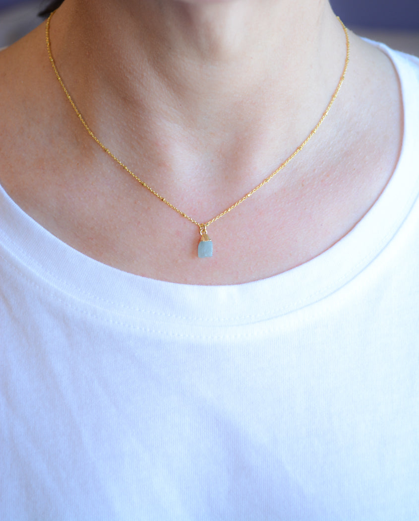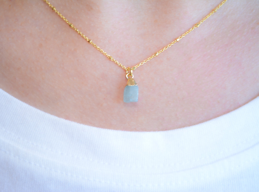 Gold Necklace With Rough Cut Aquamarine Pendant