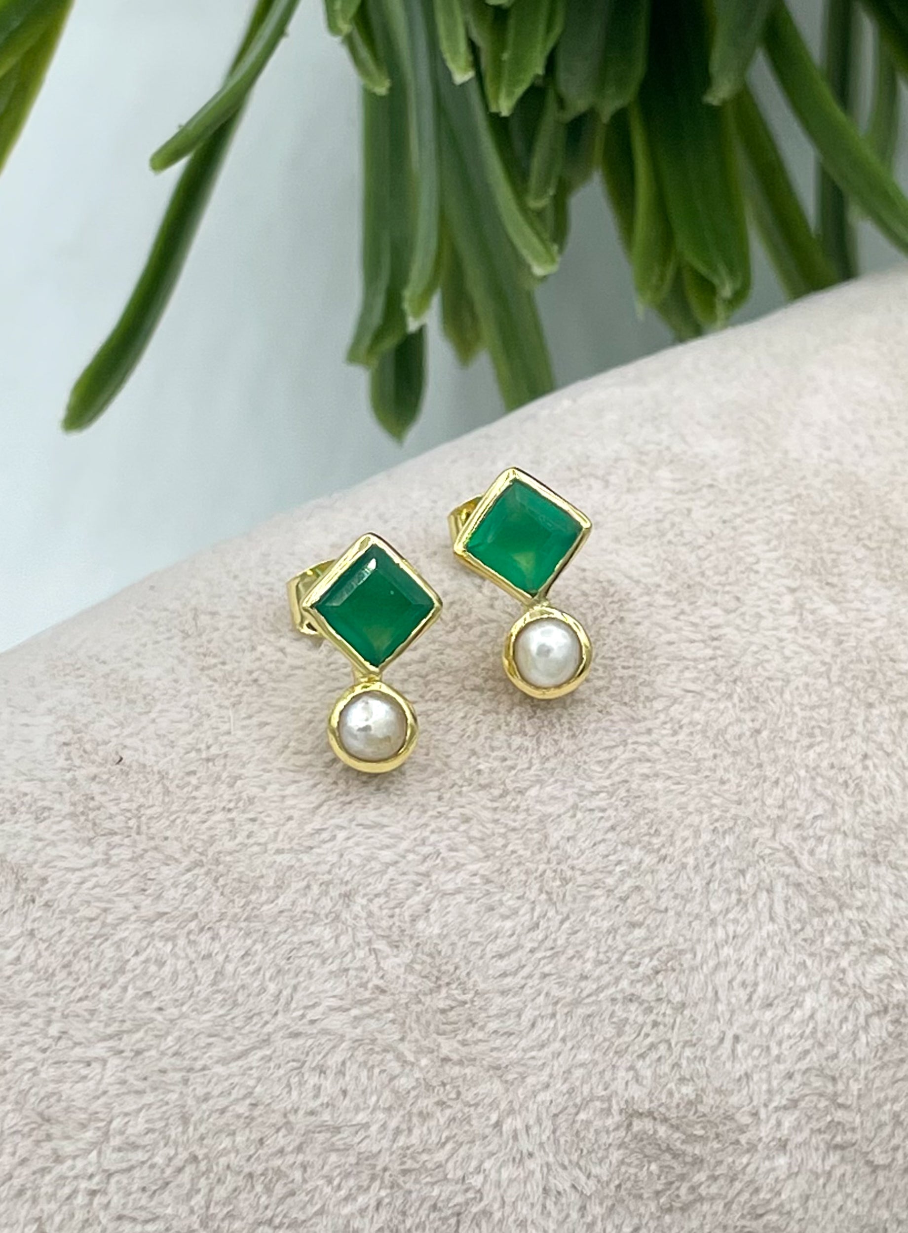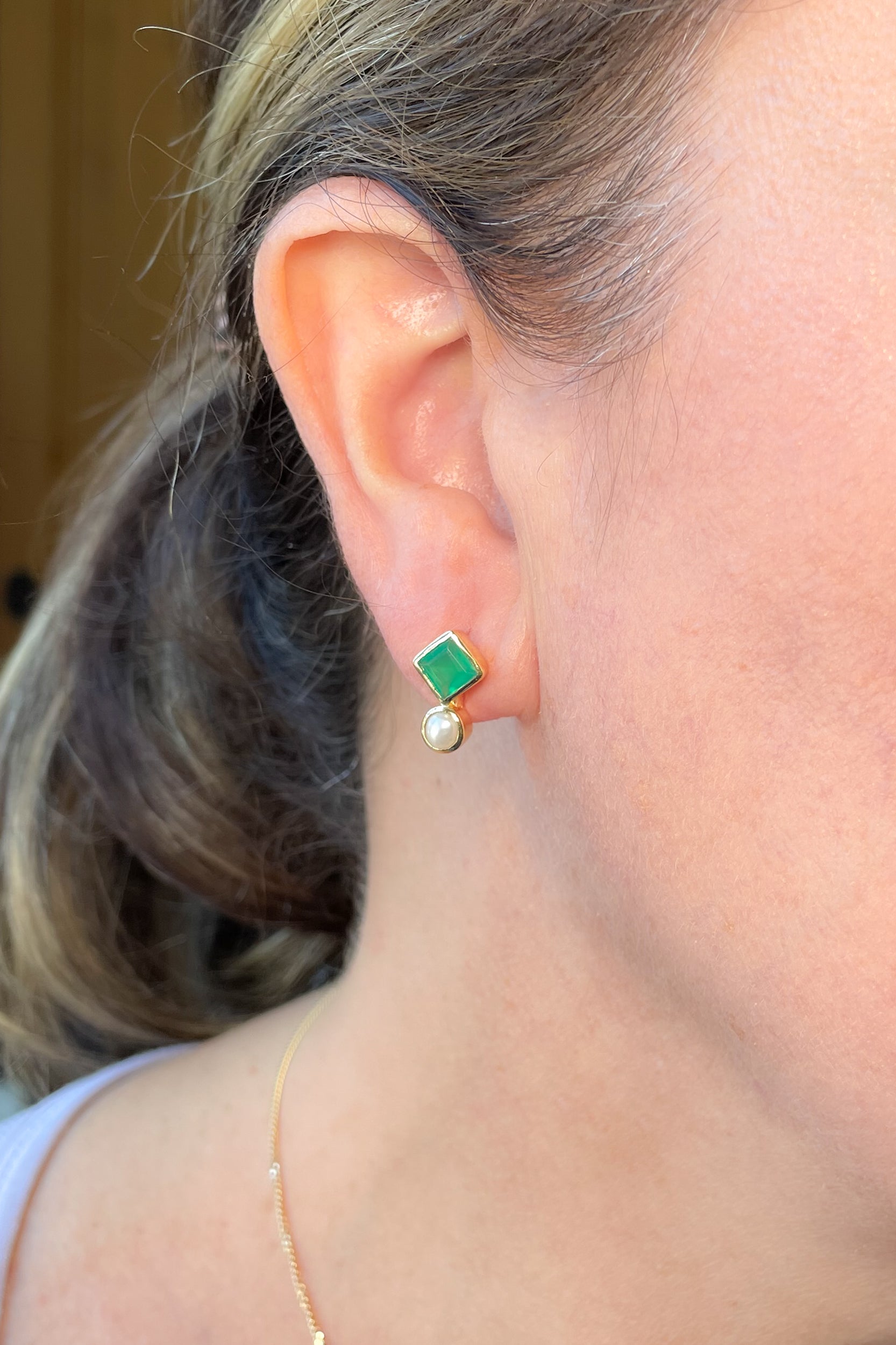 These elegant earrings are crafted from 22kt gold plated brass, freshwater pearls and faceted green onyx. They bring a touch of sophistication and color to any outfit, and their 1/2" length ensures they won't overpower any look.