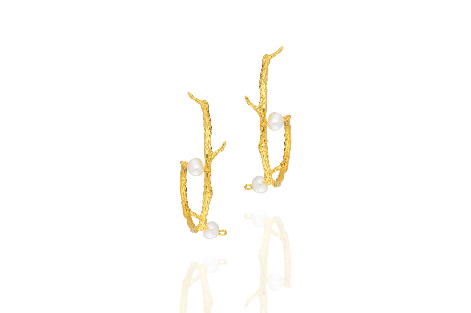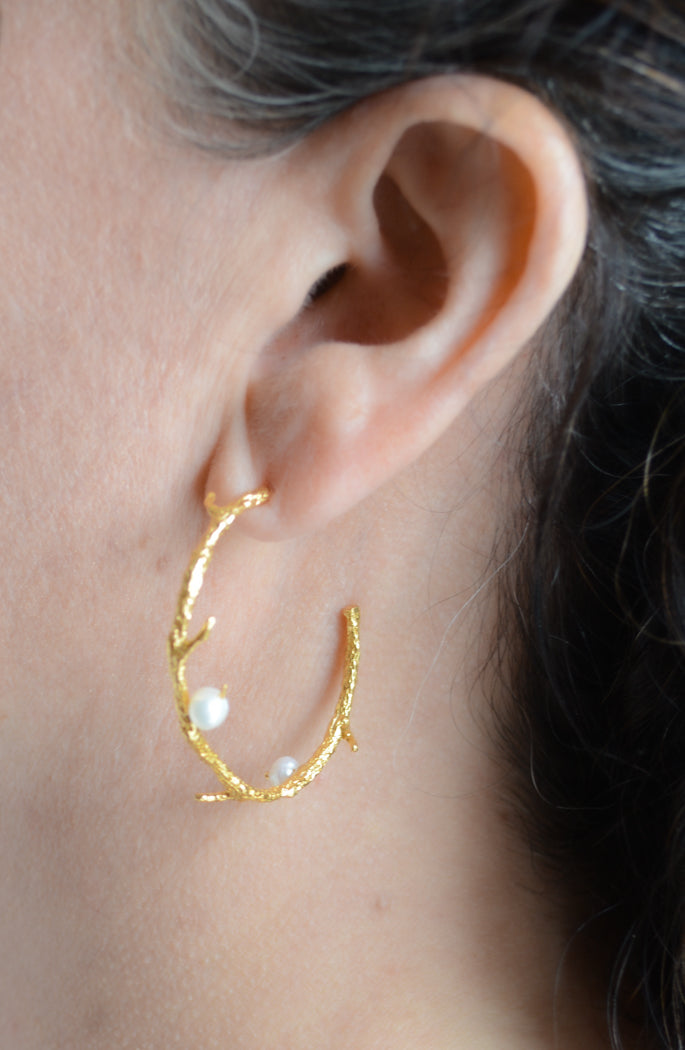 Gold Plated Branch Hoop Earrings With Freshwater Pearl
