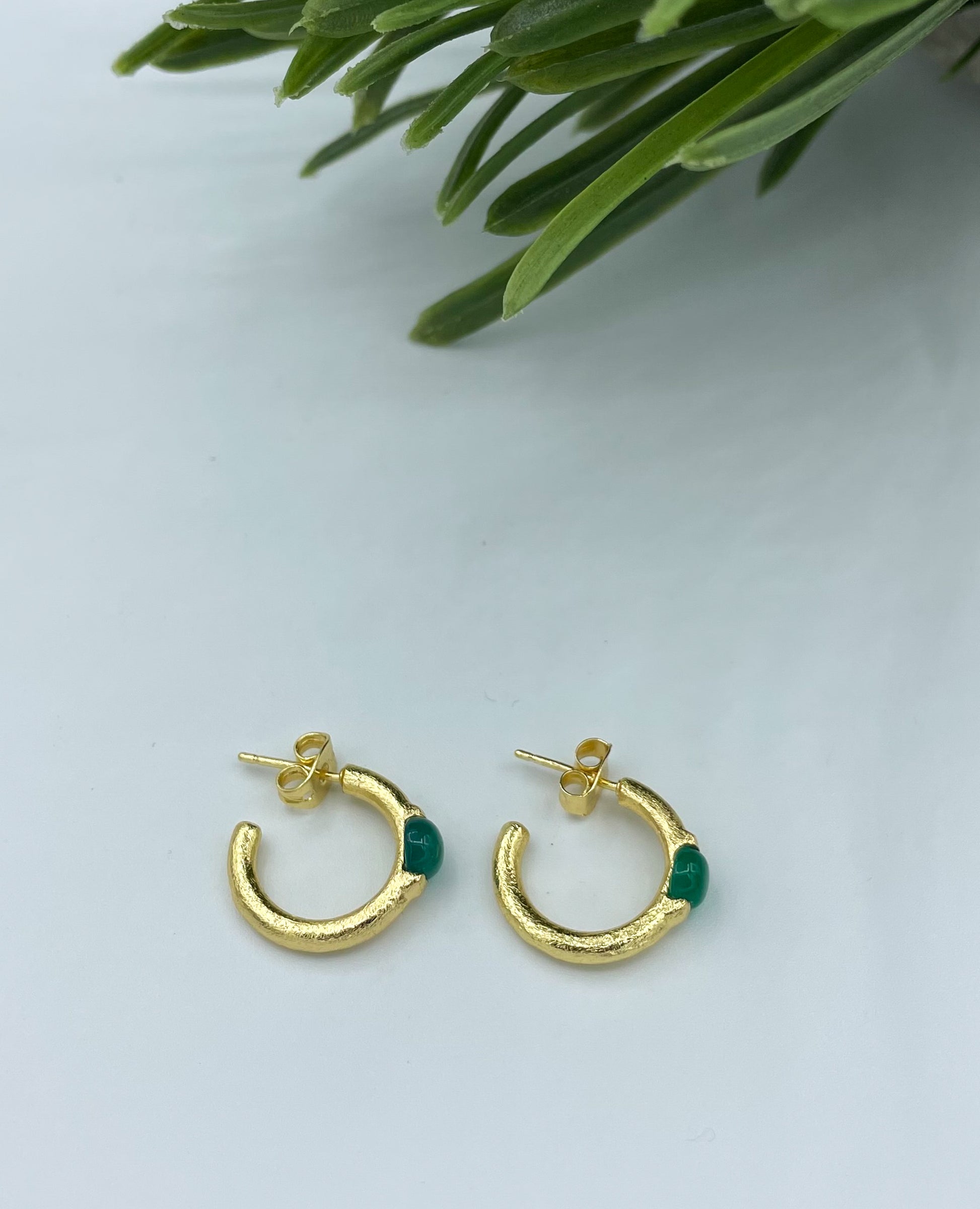 Add some bling to your look with these gorgeous gold-plated textured hoops! Each pair has a post for easy wearing and sparkly green onyx accents for an extra pop of color - all measuring just 0.5 inches in length. Talk about a fashion "mini miracle"!