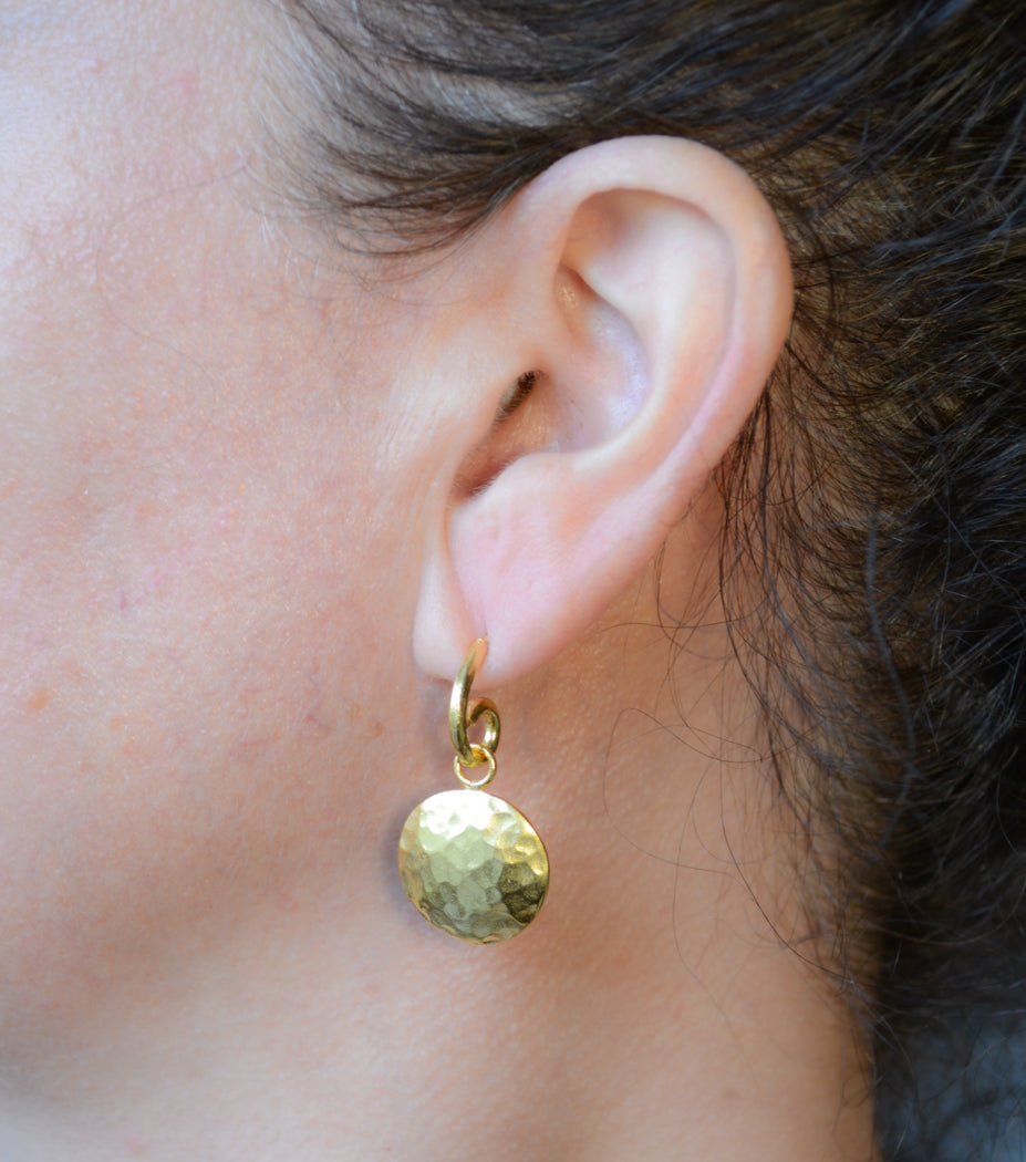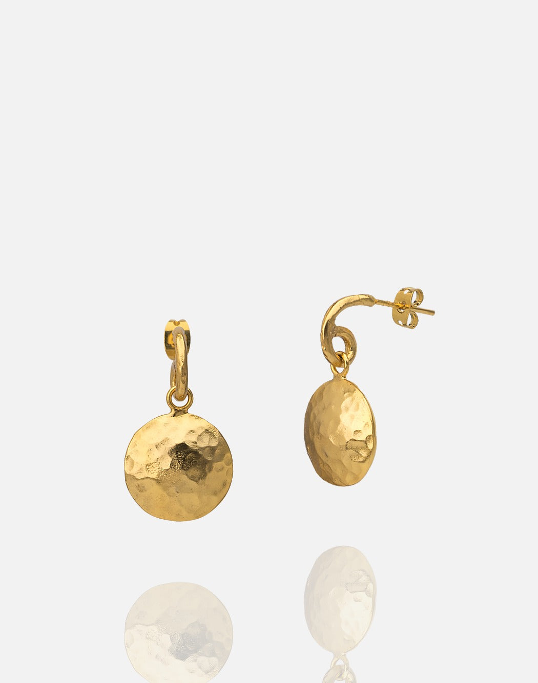 Embark on your next adventure wearing these hammered textured earrings. With a radiant 22kt gold plating and unique design, they'll be sure to add an intrepid edge to any ensemble.